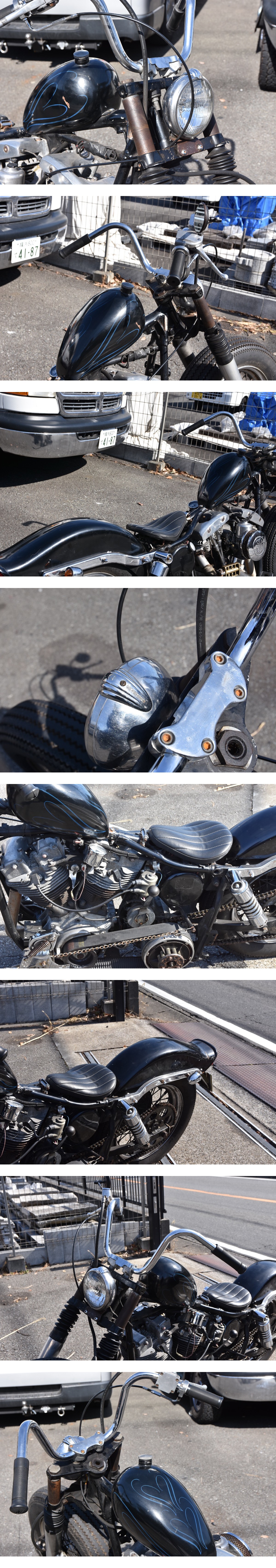 | 数あるオークションの中から当オークションをご覧頂き誠にありがとうございます。1975年モデルのショベルヘッドFLH1200を出品させて頂きます。初年度登録昭和50年の国内ディーラー車でございます。 ●型式 2A ●車体番号 2A***H5 ●走行距離 社外メーター50km付近 ●車検証走行距離 平成29年 0km 平成27年 5400km ●初年度登録 昭和50年5月 ●車検 無し 予備検査31000円にて承ります。 エンジンはSU儀式後異音など無く始動性も良好でほぼほぼキック1,2発でかかります。高回転までスムーズに吹けあがりアイドリングも安定しております。しっかりと試乗済みでエンジン音もとても静かでございます。 外装はタンク凹み無し塗装カケ箇所あり、鉄パーツさび箇所あり、その他年式、中古車なりのコキズ等はあるものの目立った傷や破損はございませんが全体的にやや磨きがいがある様な雰囲気のある印象でございます。 シート切れ無し、フォーク漏れ無し、タイヤは前後しっかり8分山程残っております。 フレームの歪みや修復歴はございません。 主な仕様、変更点等 ■オープンプライマリー ■2インチベルト ■ロッカークラッチ ■ラチェットミッション ■ジョッキーシフト ■ワッセルタンク ■ボブフェンダー ■タックロールサドルシート ■プルバックハンドル ■ビンテージヘッドライト ■SUキャブ ■ドラッグパイプマフラー その他 中古車ですので可能な限り現車確認、試乗をお願いします。 遠方で現車確認が出来ない方は納得いくまでご質問下さい。 全国どこでもご自宅または営業所までお届け可能でございます。 神奈川近郊の方は格安にてお届け可能でございます。 ご不明な点はお気軽にご質問下さい。 | ||