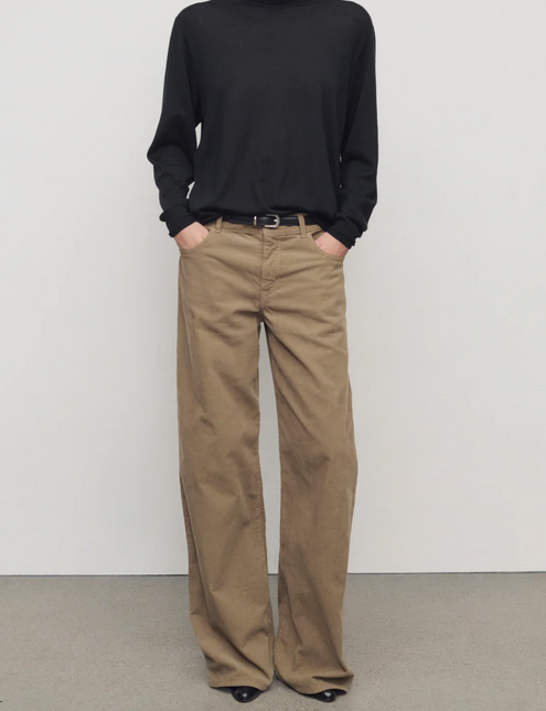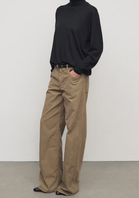 | 日本製のコットンコーデュロイを使用したザ・ロウのミッドライズパンツ。 ストレートフィットのクラシックな5ポケットデザインが特徴です。 各アイテムは、ステルス ラグジュアリーとミニマルな使いやすさを醸し出し、モダンで上品なスタイルを作り出しています。 自分へのご褒美やプレゼントにいかがでしょうか。 |