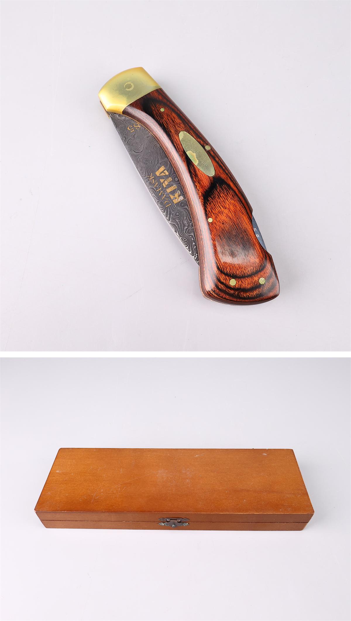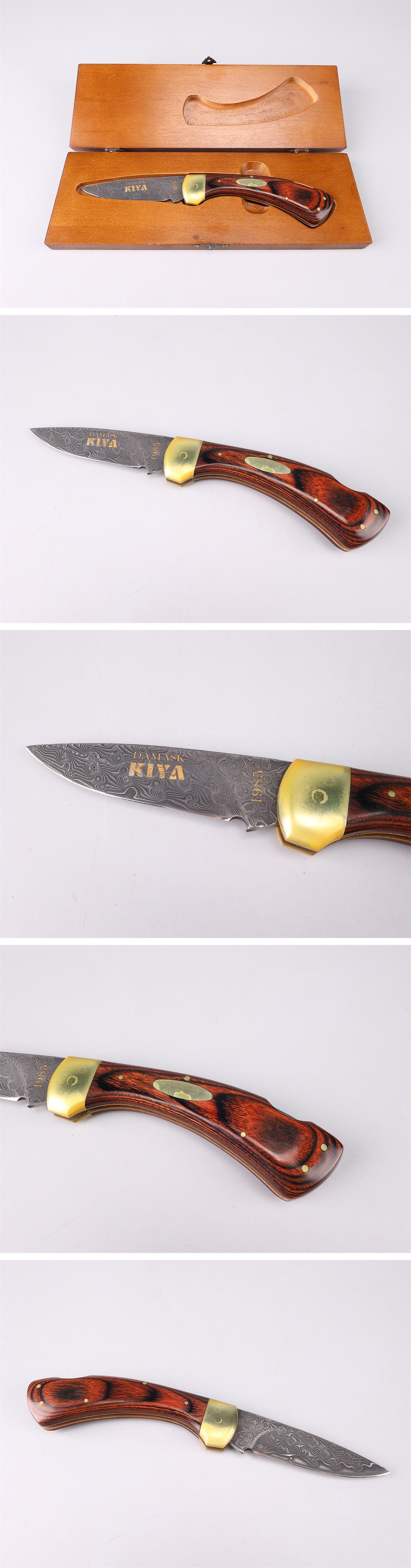 【吉】WB582 【東京木屋】 DAMASK KIYA 1985 ダマスカス ナイフ 折り畳みナイフ 全長22.5㎝ 箱付 未使用品S! 收藏