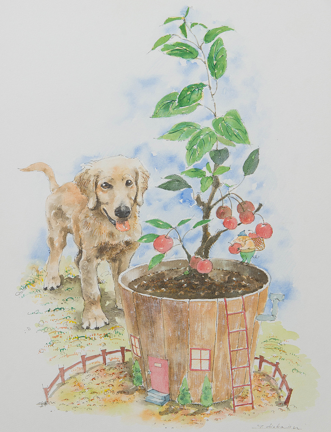 【1on1】真作 新海智也 『子ぶたさんが住むリンゴの木』 水彩 額装 ■ ペットアーティスト 日本イラストレーター協会会員 京都府在住 收藏