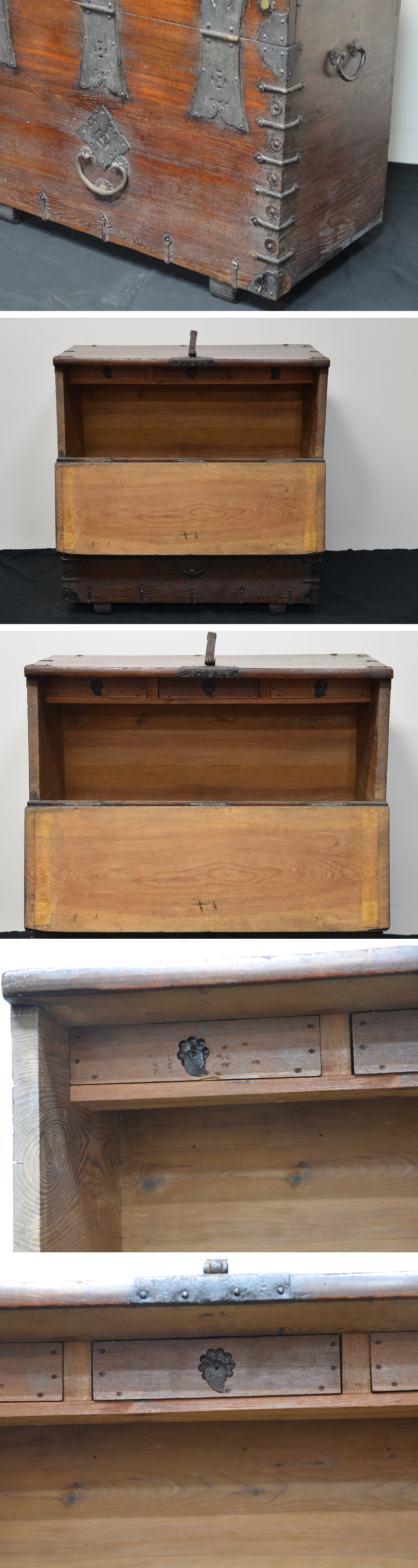 i452 時代 李朝家具 木製鉄金具 バンダジ 高さ約94㎝ バンダヂ【白蓮】02 收藏