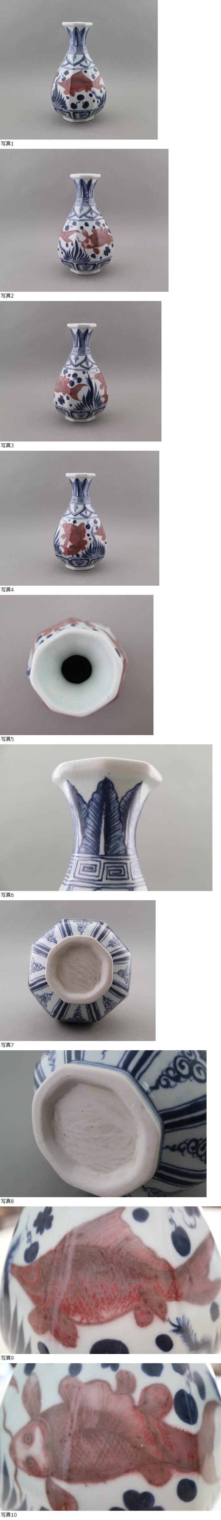 | 【GTS】★中国明・青花釉裏紅魚藻文八角瓶17~18世紀 |