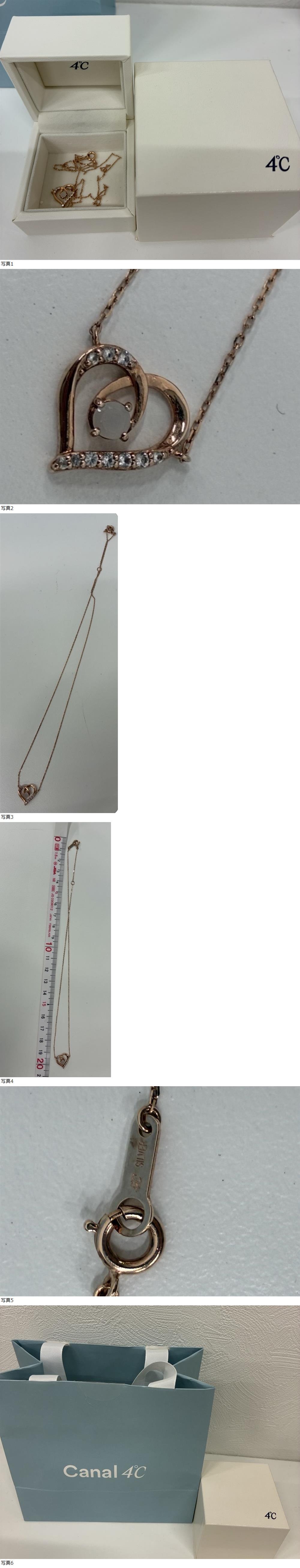 1781★ヨンドシー 4℃ ネックレス アクセサリー Silver刻印 ハート ラインストーン 箱 ショッパー付き 経年保管品 收藏