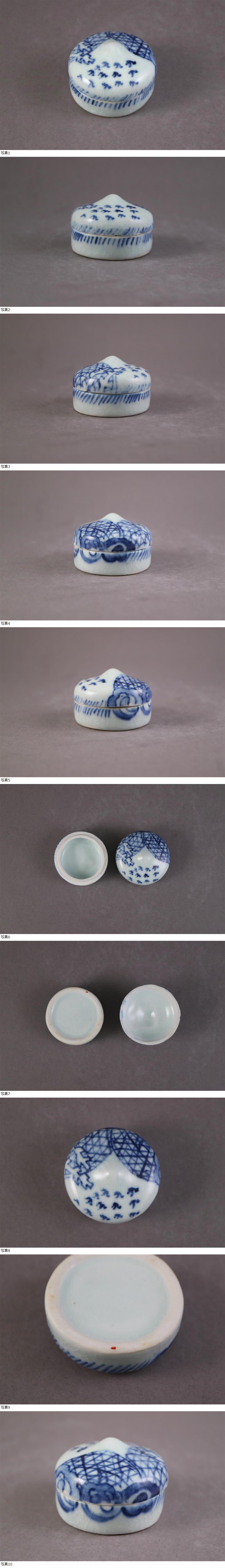 【GTS】中国明清・染付干網文「形物香合相撲・番付表」香合17~18世紀 收藏