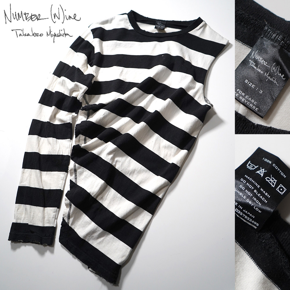 初期モデル【 NUMBER NINE ナンバーナイン 】 希少 アシンメトリーカットソー Tシャツ サイズ3 ボーダー 黒×白 收藏