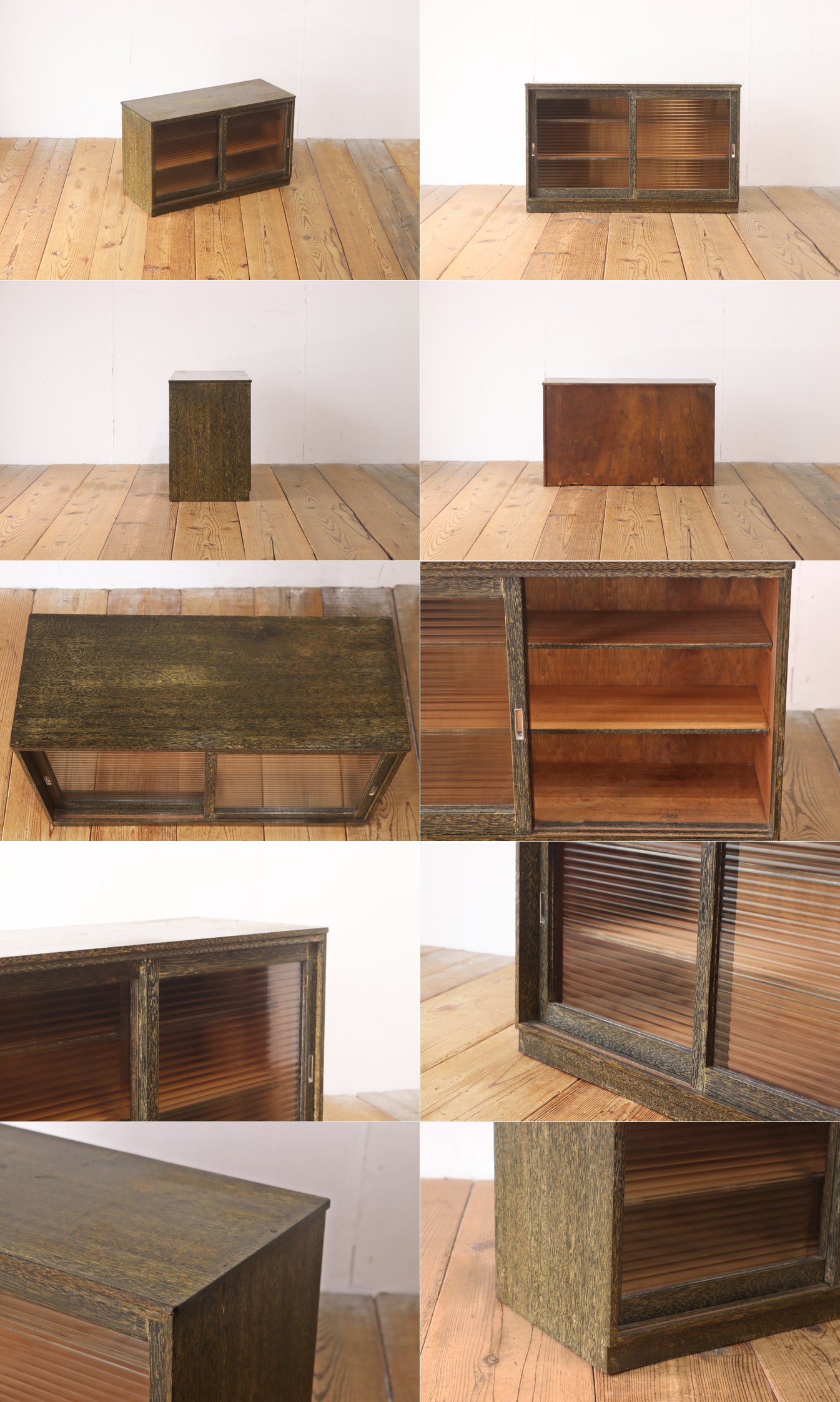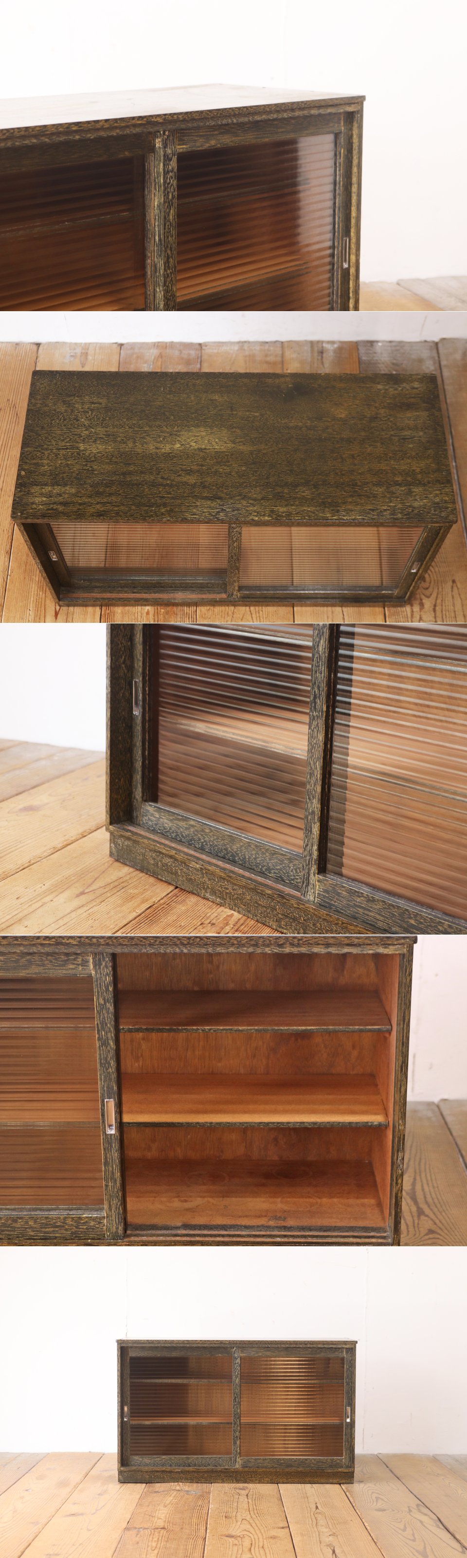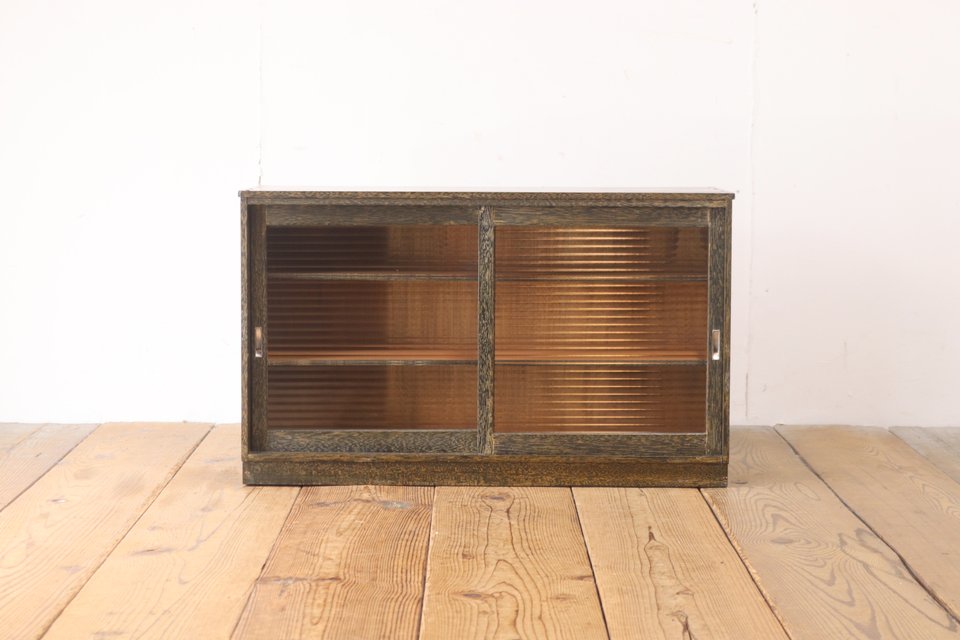 レトロ 戸棚 卓上 ガラスキャビネット 収納 ラック モールガラス ラワン材 ヴィンテージ/昭和古道具骨董アンティーク/RBT03048 收藏