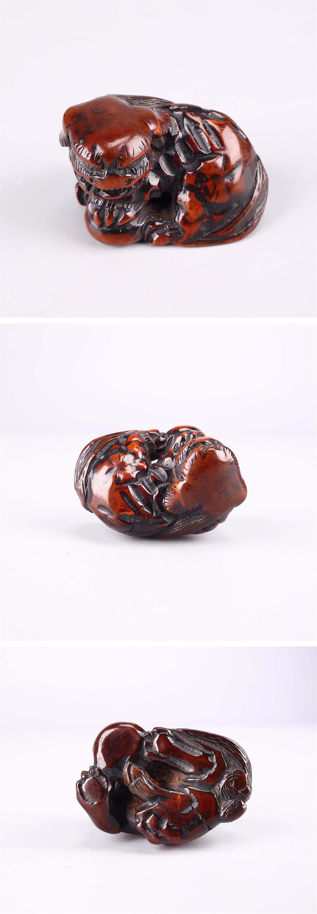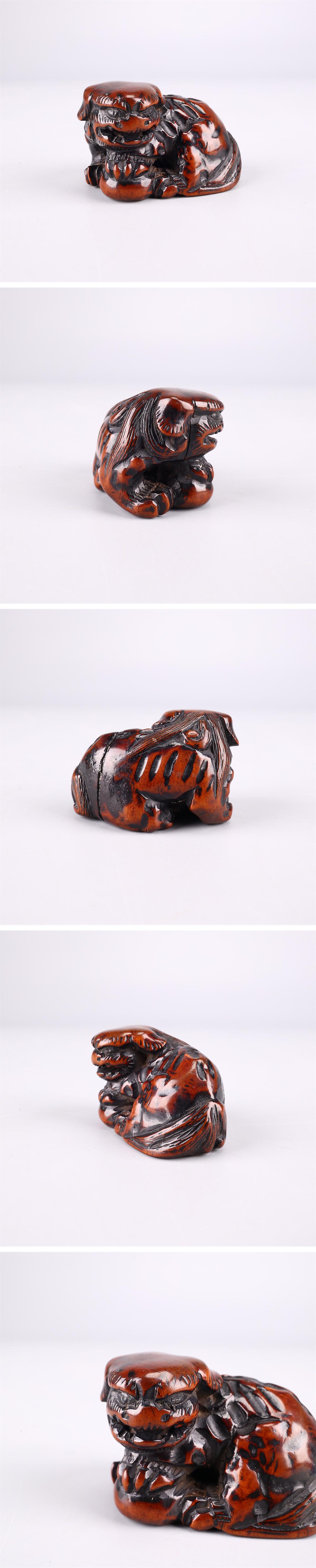 【吉】MC102 【江戸時代】 木彫 獅子 根付/時代のダメージありNs! 收藏