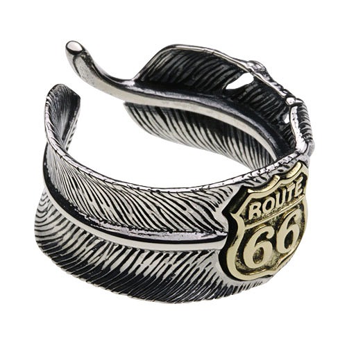 リング 指輪 シルバー アクセサリー ルート66フェザー 羽根 ネイティブインディアン 標識 アメリカ イーグル メンズ r0419 收藏