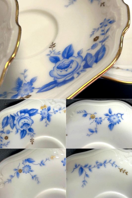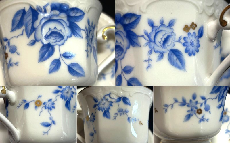 ◇優雅なティータイム【ノリタケ Noritake【ブルーローズ】「カルテット」アイボリーチャイナ デミタスカップ&ソーサー R03103 收藏