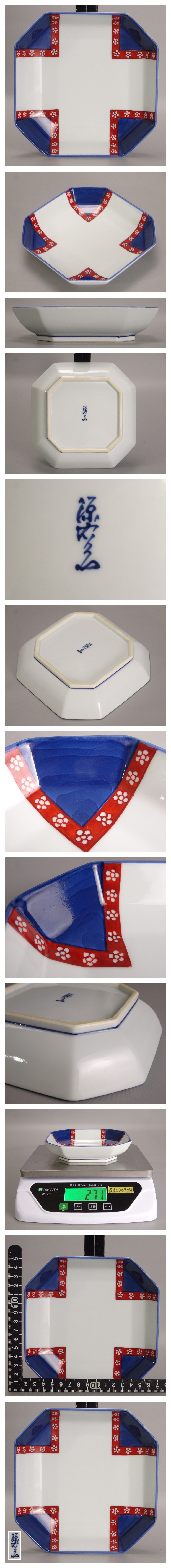 有田焼 名工 館林 源右衛門 染錦 梅小紋 方皿 角皿 取皿 鉢 角鉢 【菓子器 菓子鉢 料理屋 料亭 うつわ 伊万里焼 作家物 在銘】 r8 0309 04 收藏