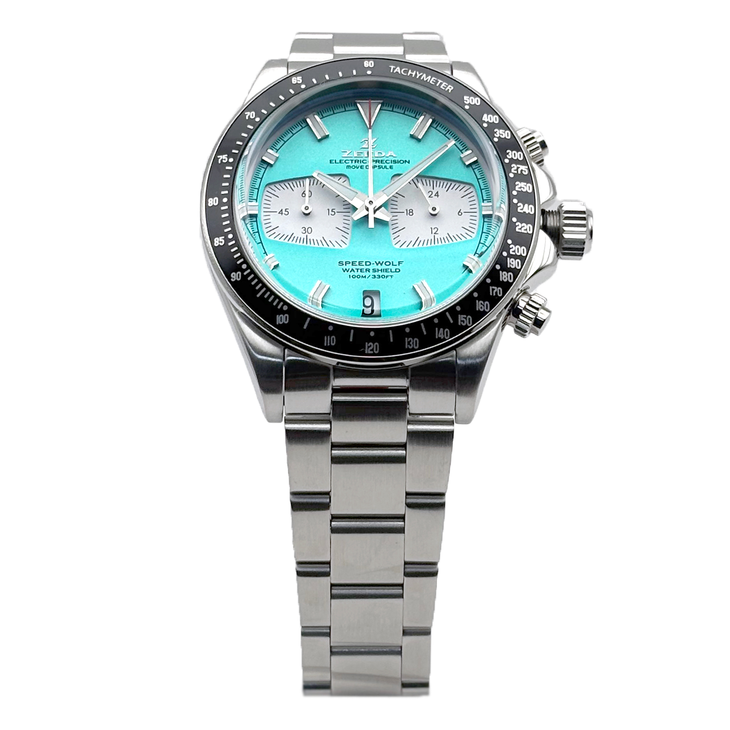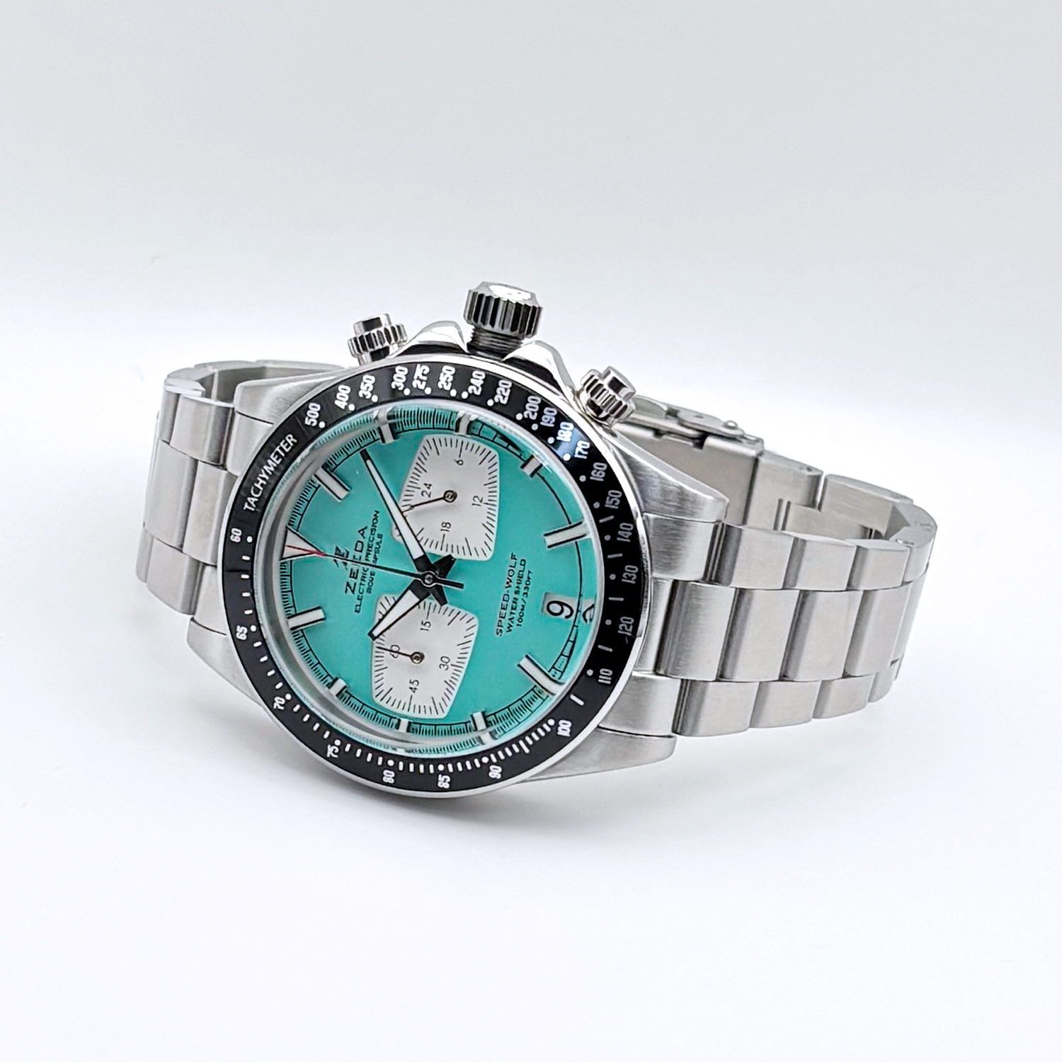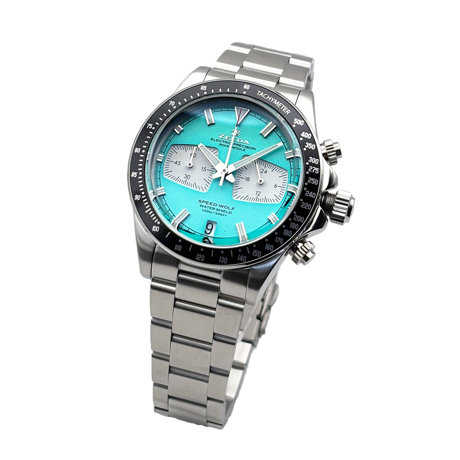 ZEEDA SPEED-WOLF ジーダ スピードウルフ クロノグラフ TMI(SEIKO)ムーブ搭載 SPW-MBL ターコイズブルー×シルバー メンズ レディース