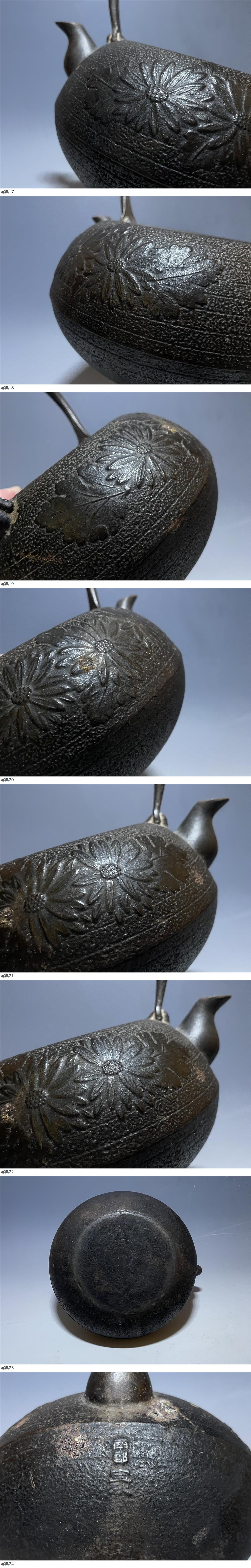| 南部鉄瓶 南部 在銘 宝秋? 古い鉄瓶 菊花文 煎茶道具 茶器 重さ約1720g |