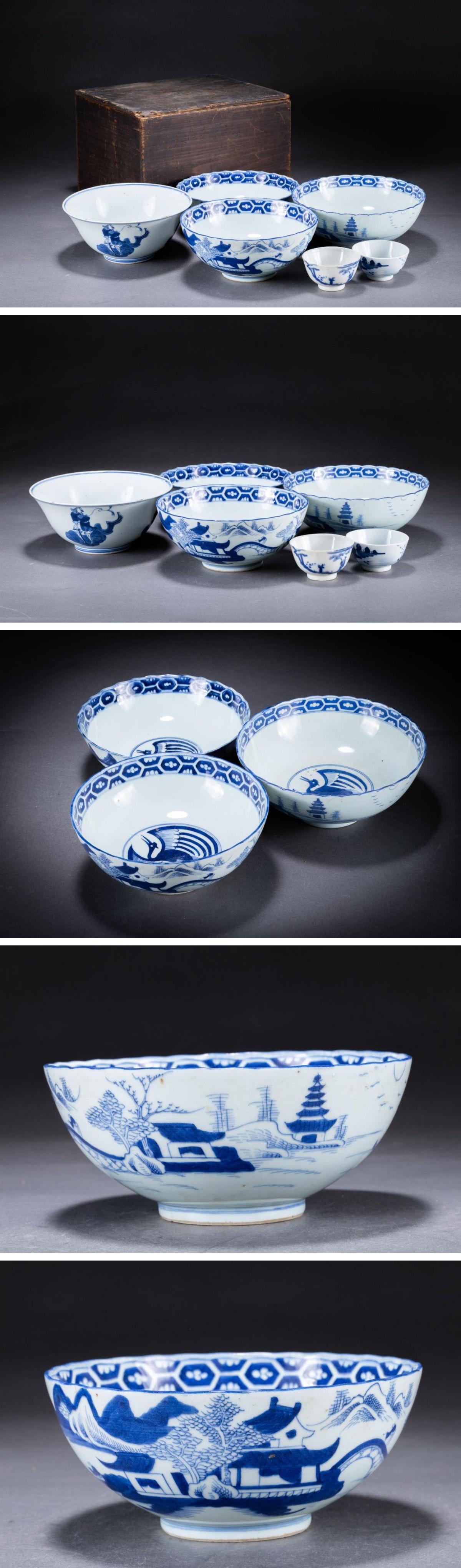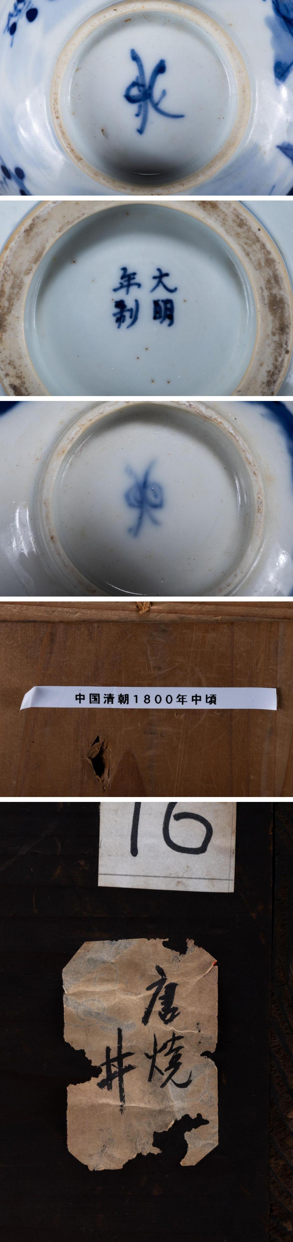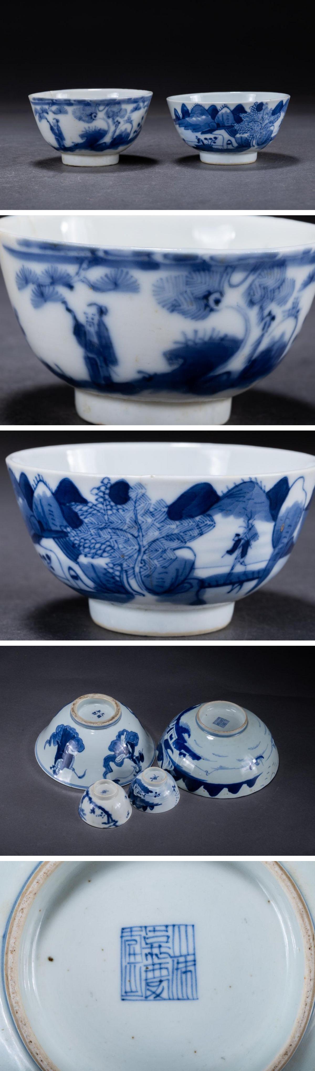 【華】某収集家放出品 明清時代 中国伝来 染付き 山水紋茶碗揃い 小物 古美術 骨董品A25090383-TO 收藏