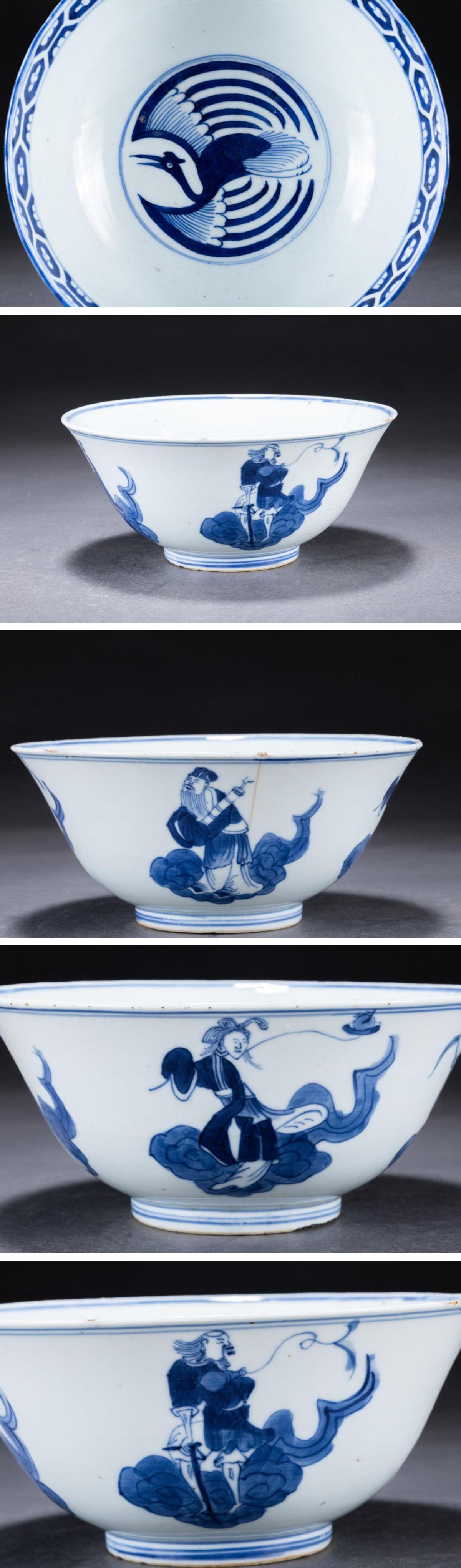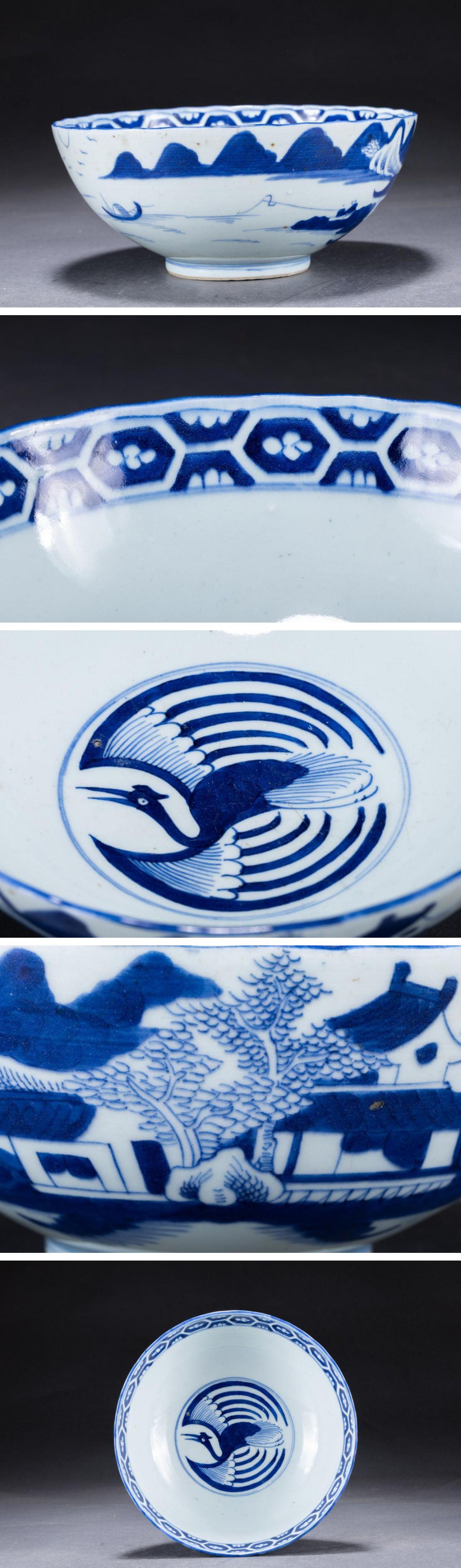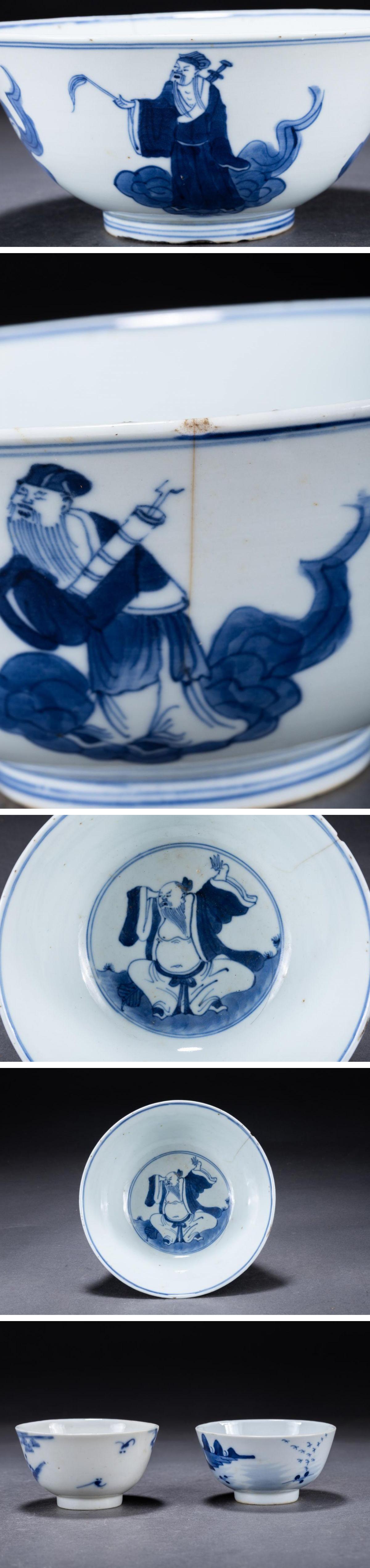 【華】某収集家放出品 明清時代 中国伝来 染付き 山水紋茶碗揃い 小物 古美術 骨董品A25090383-TO 收藏