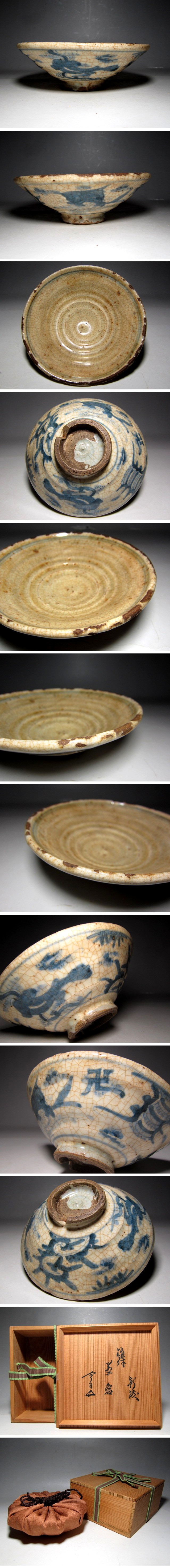 清渡り 染付茶碗 裏千家十五代 鵬雲斎花押 ※口にキズ有り v283 收藏