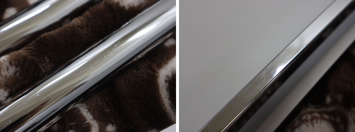【商品説明】 クロームメッキのフレームと4本のスティールチューブの脚が特長のテーブル。 上品な見た目の印象ながら非常に頑丈な構造です。 クラシカルモダンなデザインで、USMハラーとも美しく調和します。 天板は汚れに強く扱いやすいラミネート(パールグレー)仕様で、デスクとしても使いやすいサイズです。 |